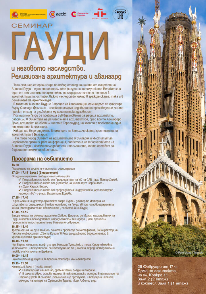 Съюз на архитектите в България кани на знаково събитие, организирано съвместно с Институт Сервантес и Дружество“ Архитектурно наследство“.